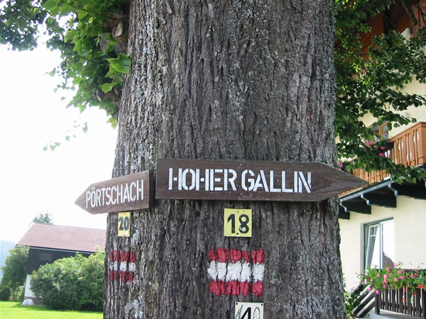 Wegbeschreibung: Führt von der Ortschaft Karl entlang einsam gelegener Gehöfte zum höchst gelegenen Bauernhof im Wörtherseebereich. Von nun an ist es nicht mehr weit bis zum Gipfel. Den Wanderweg kennzeichnet der herrliche Blick aus, den man entlang seines Verlaufes genießt. Dieser reicht vom Wörthersee bis zu den Karawanken. Gehzeit ca. 1 – 1,5 Stunden.